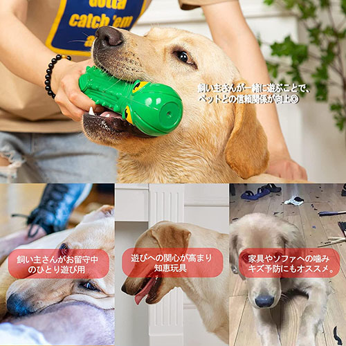 - 【丈夫さ&キーキー】犬用おもちゃは骨の形で玩具の構造を咀嚼して強化されている、丈夫さあり、凹凸のある滑り止め設計で、犬がおもちゃを噛みやすい。犬が噛むときにおもちゃがキーキーと音が鳴り、犬とのインタラクションを増やし、不安やストレスの発散。犬たちはおもちゃに夢中になります。