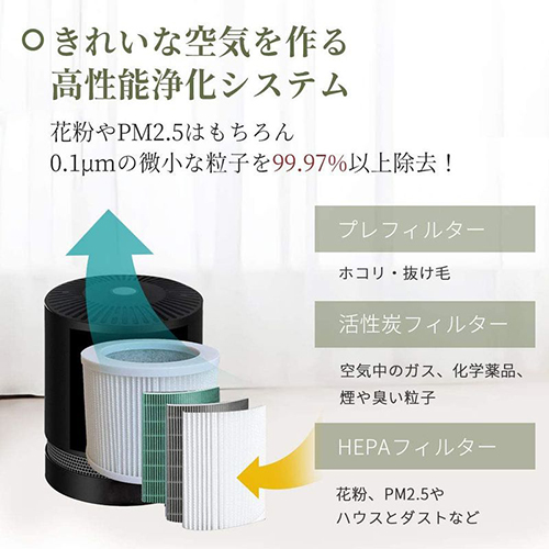 花粉や細かい微粒子、ハウスダストを吸着し、お部屋の空気を綺麗にします。